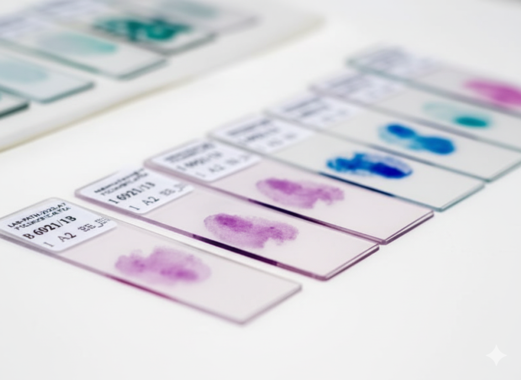 Seguimos estrictamente los protocolos actualizados del Colegio Americano de Patólogos (CAP). Esto implica una descripción detallada, medición y selección cuidadosa de las áreas más representativas del tejido para su estudio microscópico. Cada paso queda meticulosamente documentado en nuestro sistema, asegurando que el diagnóstico final corresponda inequívocamente a tu biopsia. Esta dedicación a la calidad y seguimiento garantiza la precisión y seguridad que tú y tu médico necesitan.